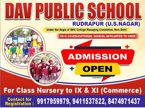 DAV Public School, Rudrapur Shimla Pistaur Gangapur Road, Lalpur Rudrapur, Udham Singh Nagar, uttarakhand - 263148 Contact - 7579464712